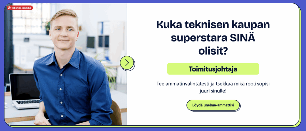 Pitkäaikainen asiakkaamme Teknisen Kaupan Liitto halusi tavoittaa 8.–9.-luokkalaiset nuoret ja kertoa heille teknisen kaupan alan monipuolisista mahdollisuuksista. Tavoitteena oli lisätä alan tunnettuutta, madaltaa kynnystä tutustua toimialaan ja konkretisoida, millaisia työtehtäviä alalla olla.